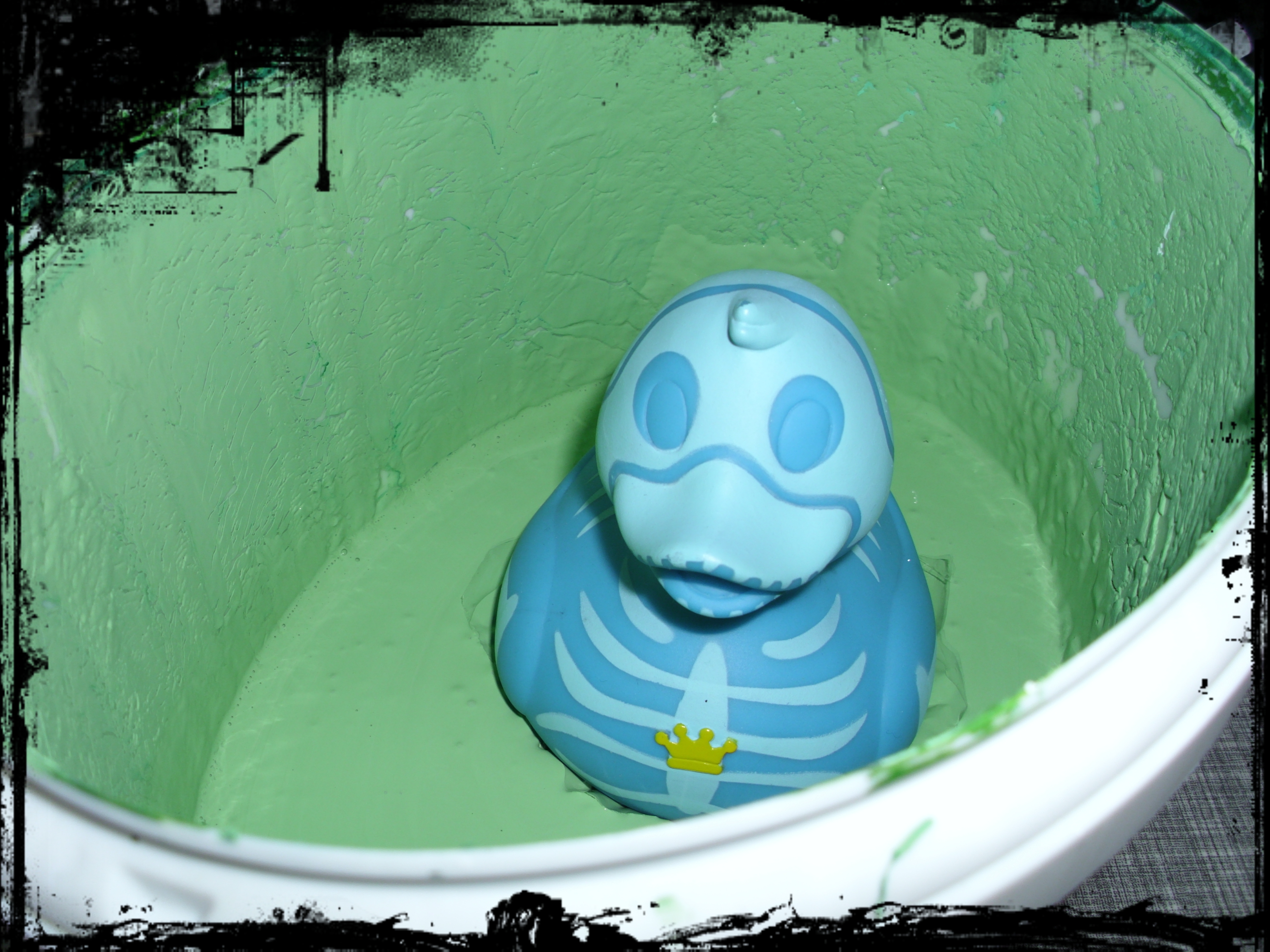 Blaue Ente in grüner Farbe. Das grenzt ja an Tierquälerei. 😉