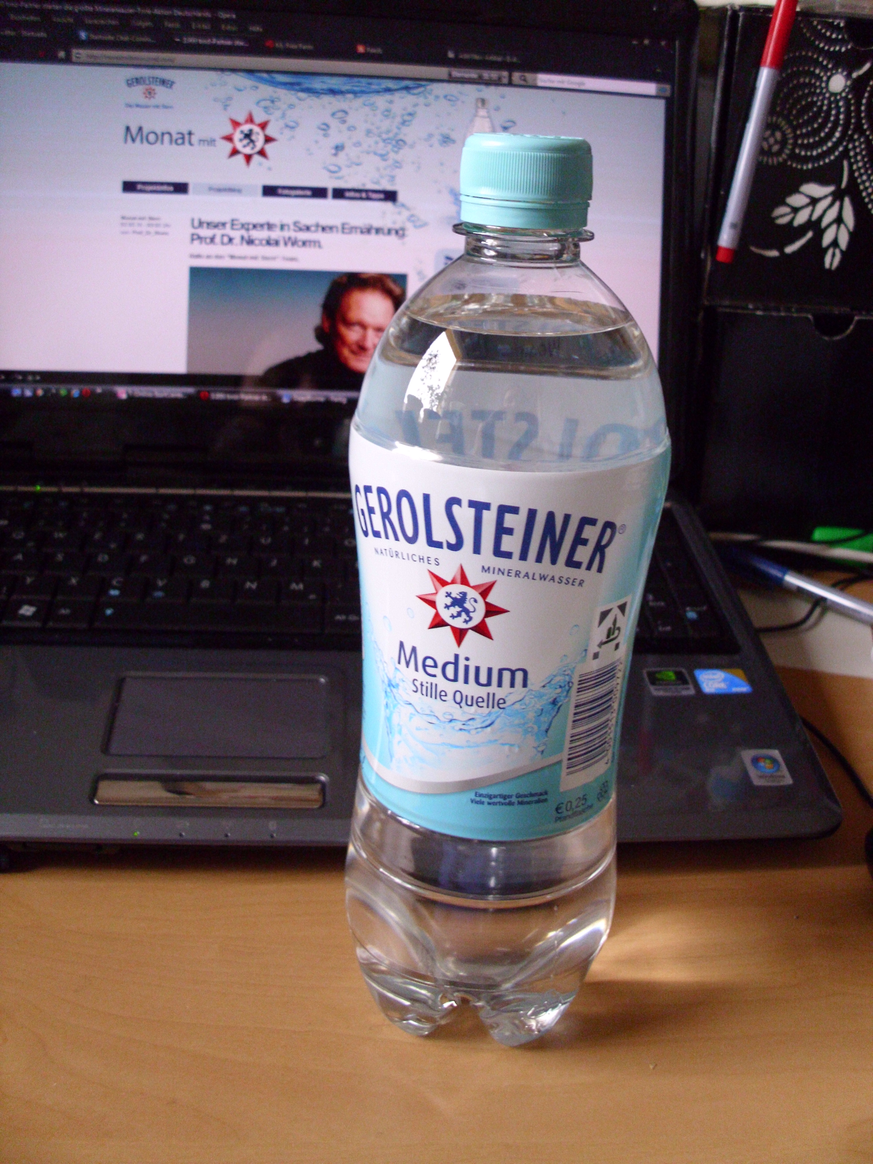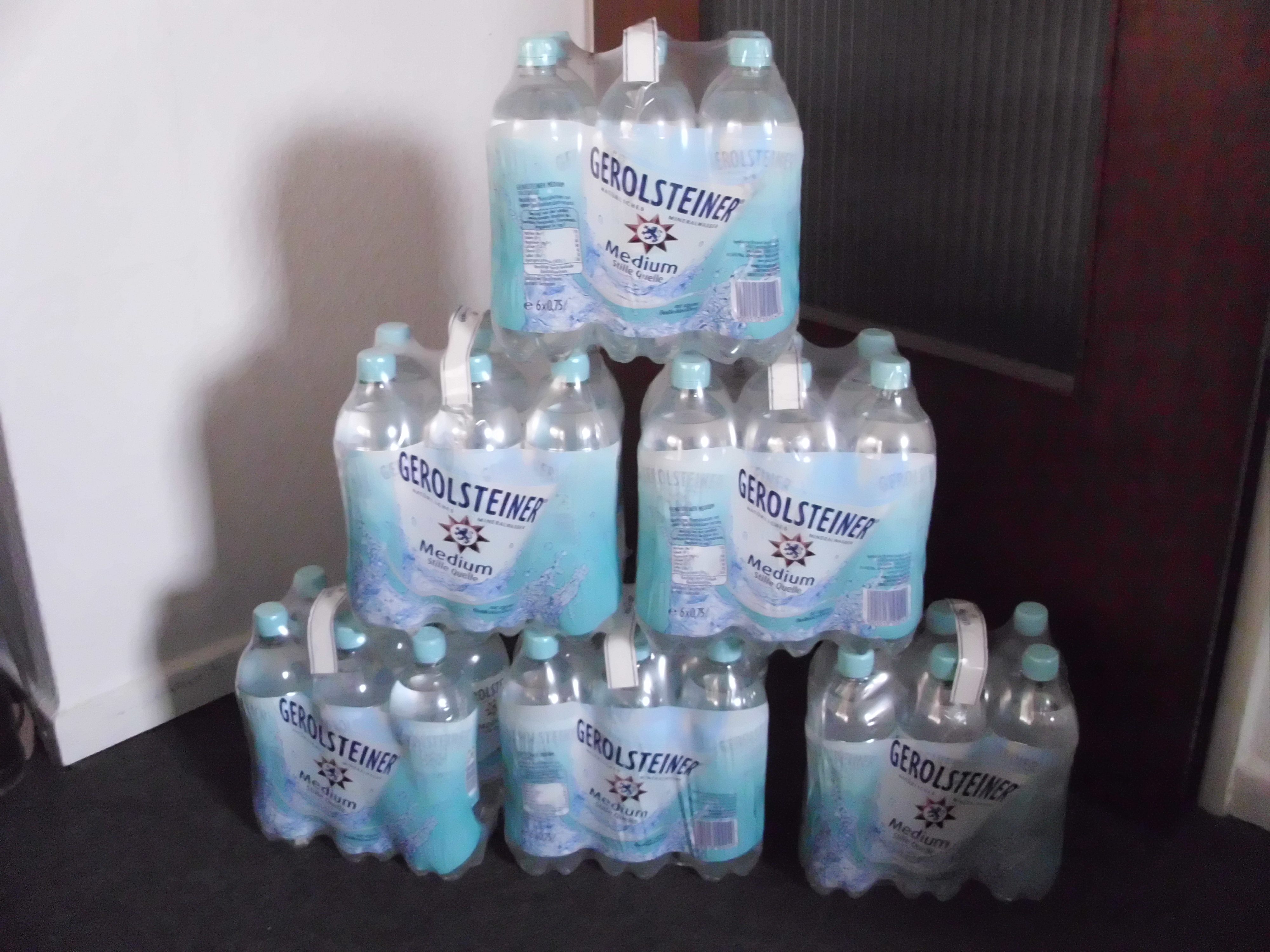 Gerade hat mir mein Postmann mein Wasser gebracht. 6 putzige Sixpacks á 0,75l Gerolsteiner Medium, also kann der Monat mit Stern jetzt auch bei mir beginnen.
