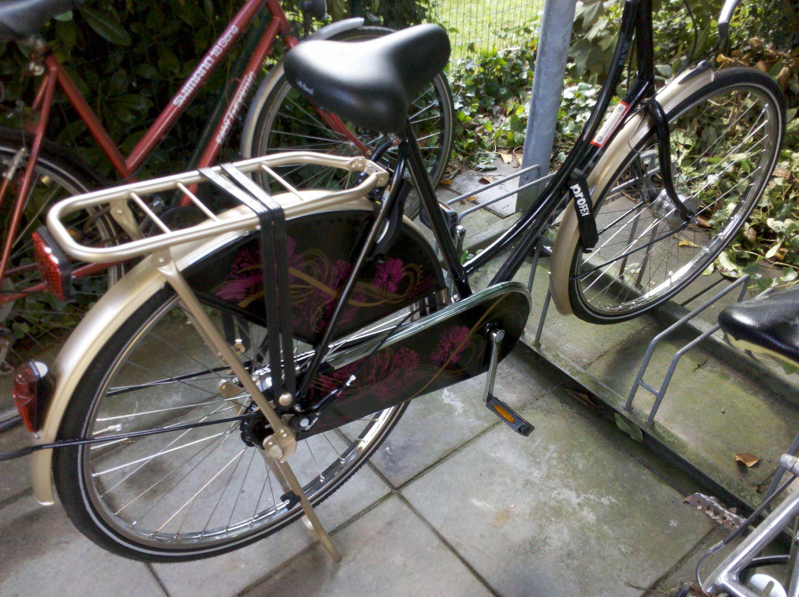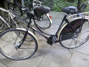 Übrigens hat meine Versicherung sich nicht lumpen lassen, ich habe genug Geld für ein sehr sehr schönes, neues Fahrrad bekommen und auch wenn ich eigentlich ein schlichtes, schwarzes Hollandrad habe wollte (von wegen, das fällt nicht so auf und so..) habe ich mir ein nicht ganz schwarzes Hollandrad geholt, aber seht es euch doch an. Das Rad heißt übrigens Gloria, Gloria Gazelle 😀