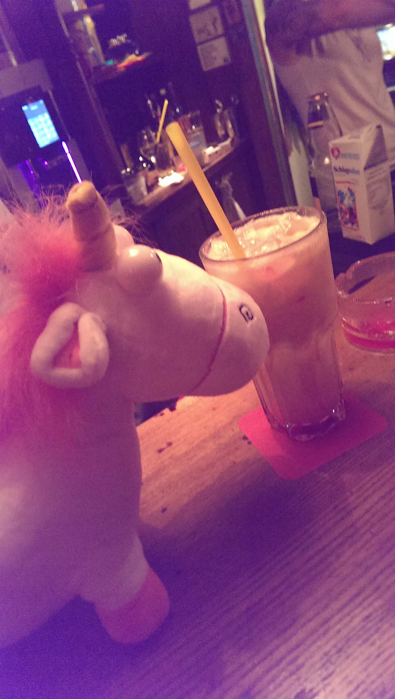 Erst mal bekam mein Einhorn einen einhorntastischen (und pinken) Cocktail, LEEECKER