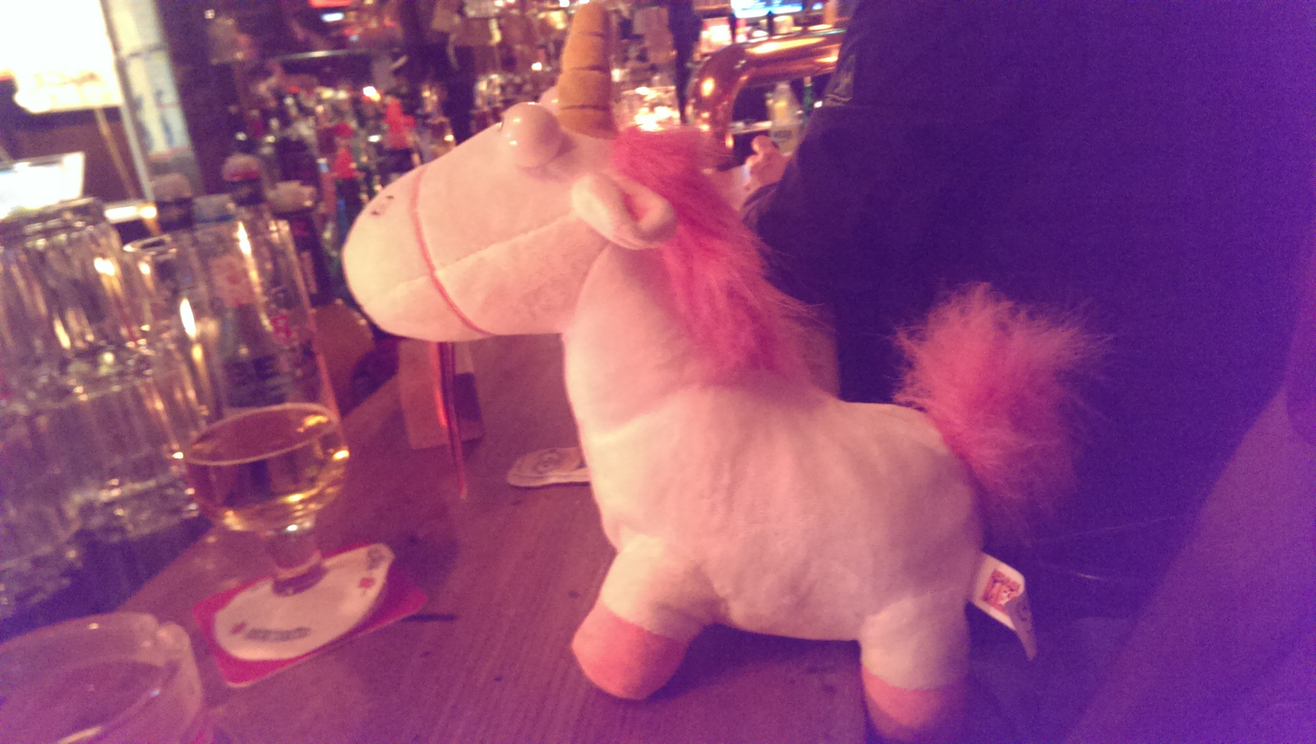 Danach ging es dann noch kurz in die Wallstraße (für Nicht-Oldenburger: das ist die Straße in der Innenstadt wo alle Kneipen sind, ich meine es ernst, eine Kneipe an der anderen…komprimiert) Im Strohhalm haben wir uns dann an die Theke gesetzt und unsere Einhörner haben beim Thekenpersonal für Lacher und bei vielen Gästen für Lächeln und Grinsen in den Gesichtern. Wir jedenfalls hatten unseren Spaß. Natürlich gibt es davon Bilder: